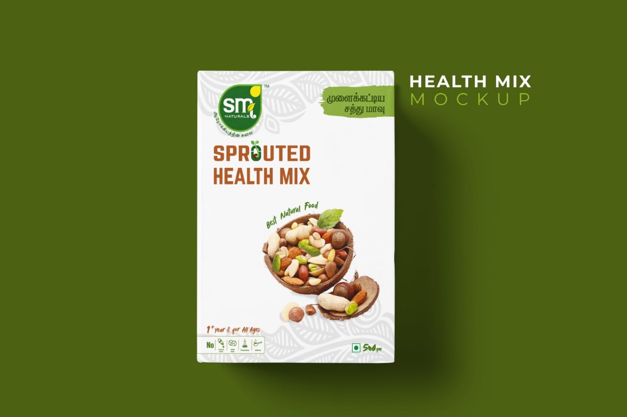 SM Natural’s Sprouted Health Mix is 100% Natural Mix with wisely chosen Grains, Pulses and Nuts. All our Ingredients are Sprouted and Roasted to Enhance flavours. We packed in a 100% Hygienic way. Our mix make your breakfast extreme nutritios with less hastle. Our mix are very low in Calories but full of proteins and Antioxidants, Vitamin C and K, Phosphorus, Magnesium and Manganese. Our mix in a daily routine intake will also increase immunity level. Its healthy for all age peoples from age 1.